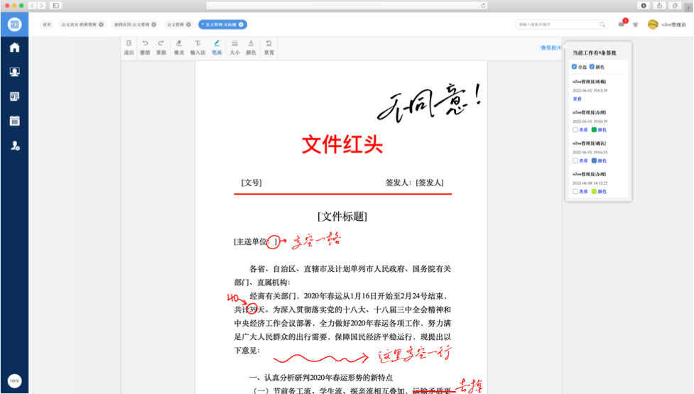 让用户在系统中更加自由地进行公文内容批注和处理。同时,批注功能也有助于用户更方便地与他人沟通和协作,有准确地表达对内容的修改意见,提高工作效率和用户体验。