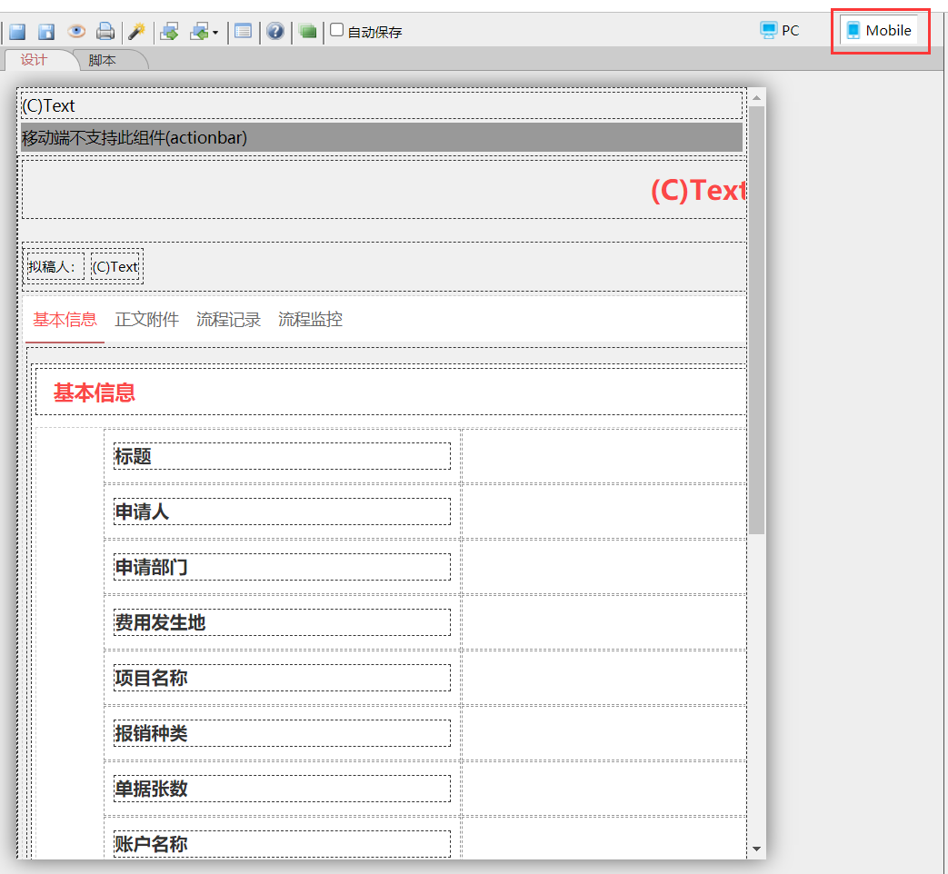 这个需要在“提交报销”环节配置表单“报销申请表单”就好,后面的环节可以配置也可以不配置,如果没有配置表单就会沿用上一个环节的表单