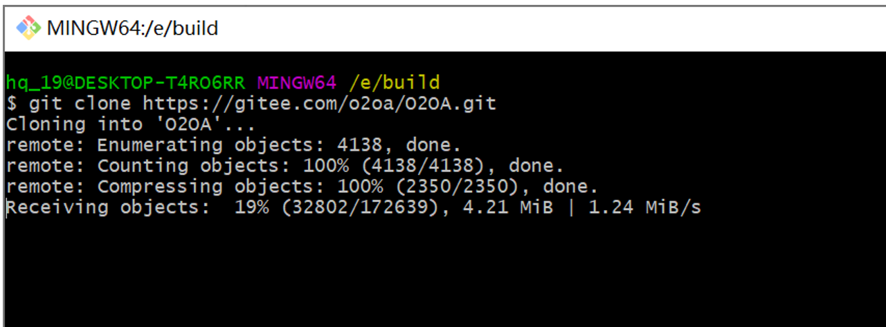 然后我们进入自己机器需要获取源码的目录,启动终端或使用git bash,输入以下命令clone源码: