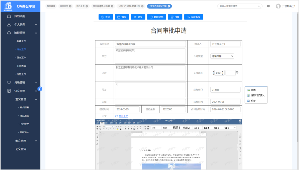 o2oa开发平台可以集成各种office在线编辑产品,实现同一网络多人对同一office文档协同操作。支持实时同步和版本控制,保证数据的一致性和完整性。
