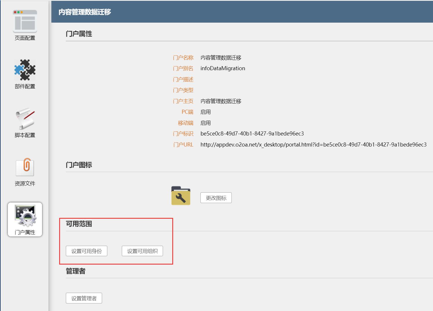 本应用的使用范围面向系统维护管理员。用于系统迁移时迁移信息发布或者是通用配置数据等相关的数据。