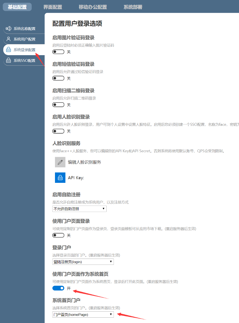 2、如若用户系统想以此为金太阳下载首页,可通过系统配置中“系统登录”页面设置配置。如下截图: