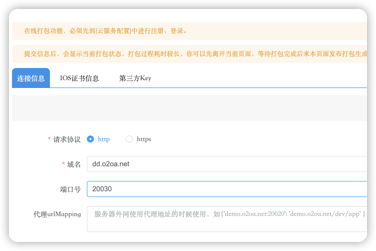 本应用适合于主要用于打包o2oa开发平台对应的移动端app。需要正确填写打包表单,包含o2oa开发平台服务器连接地址信息等内容。
