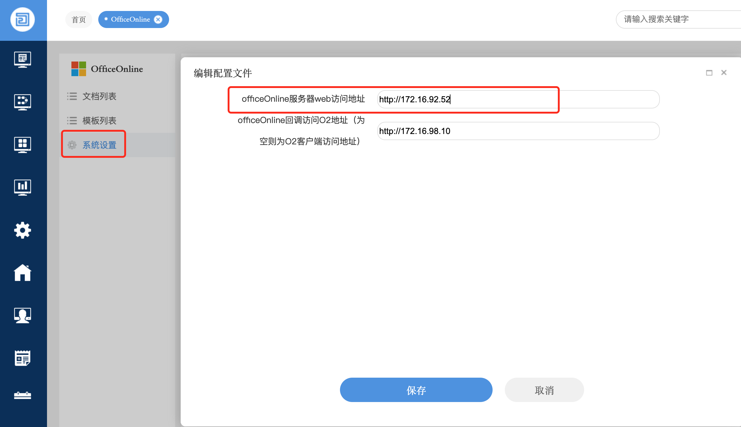 首先使用管理员身份进入配置界面进行配置,地址:http://***/x_desktop/app.html?app=onlineoffice: