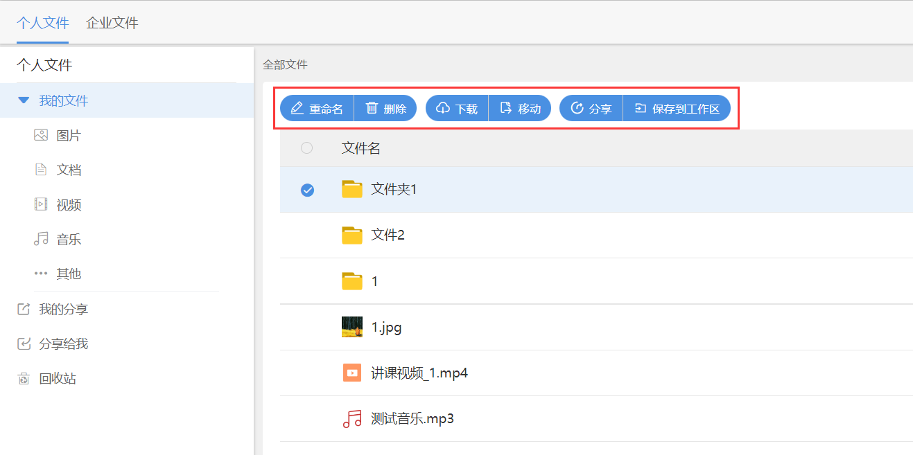 个人文件用于个人的文件存储,支持图片、文档、文件夹等,支持office文档在线编辑。