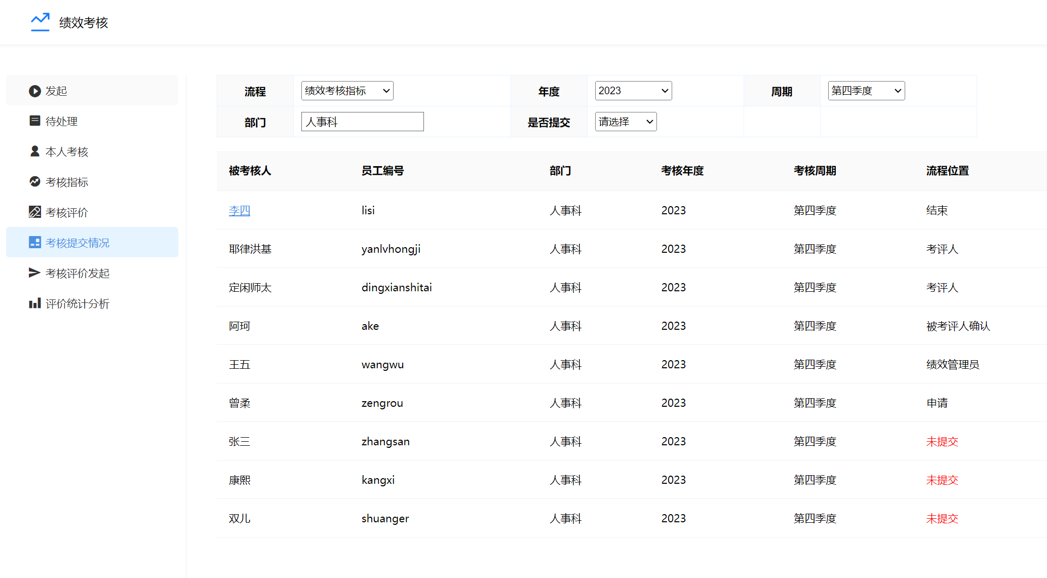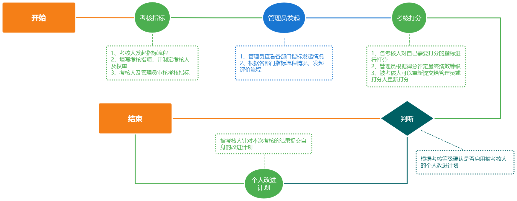 管理员在相关时间点发起各部门人员的考核评价流程。
