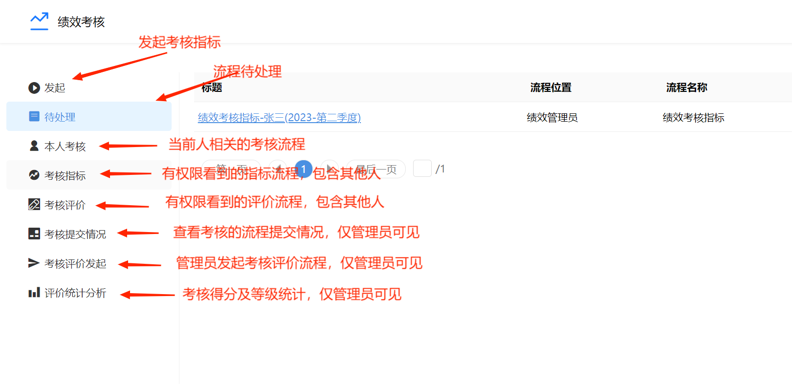 1、打开系统菜单-流程管理,找到流程应用[绩效考核],点击删除按钮即可删除流程应用