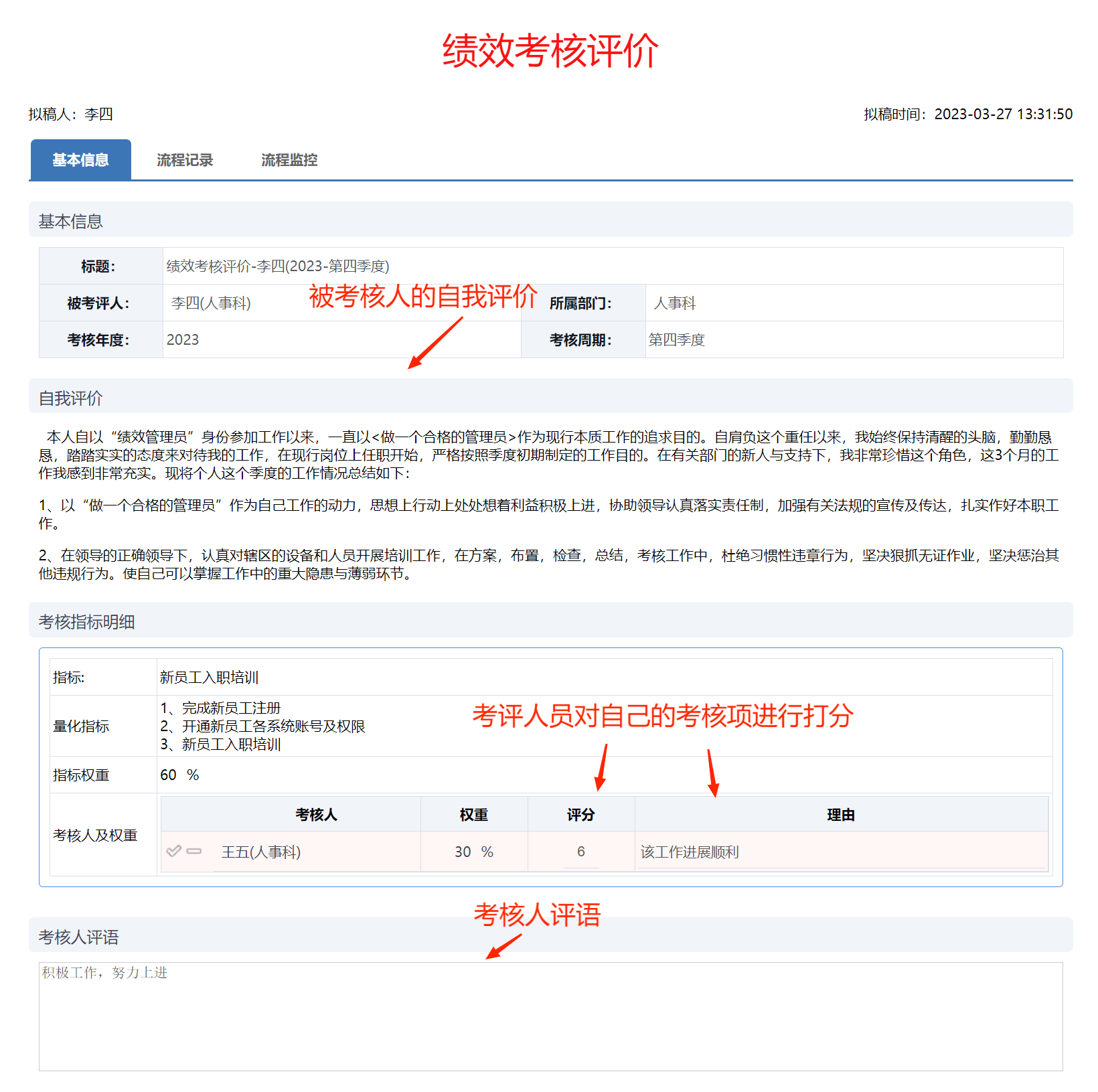 在考核评价流程中最终考核评定如果是“d”或“e”,系统自动给该用户发起“绩效改进计划”流程,并推送待办给用户。