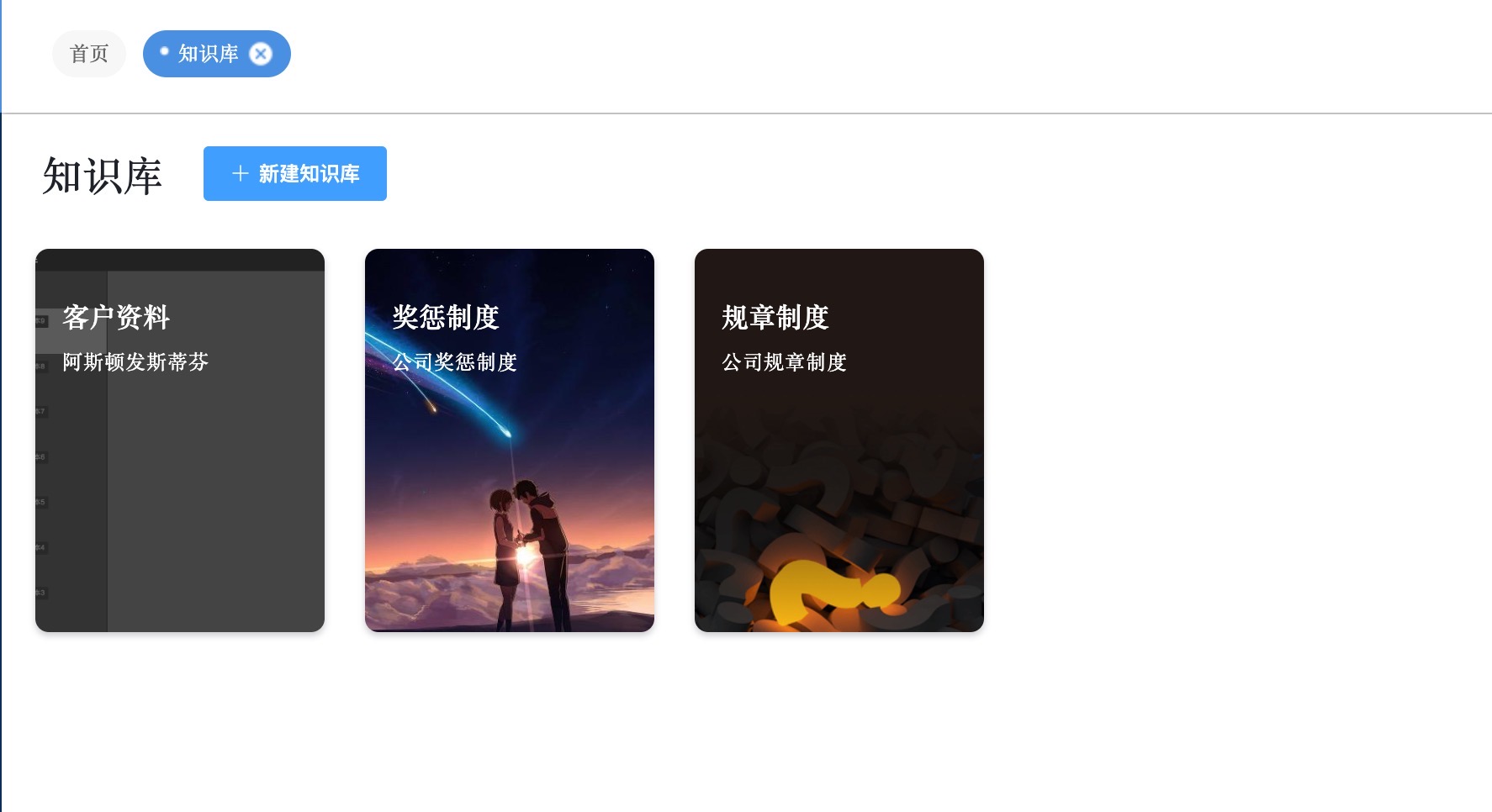 创建知识库界面: