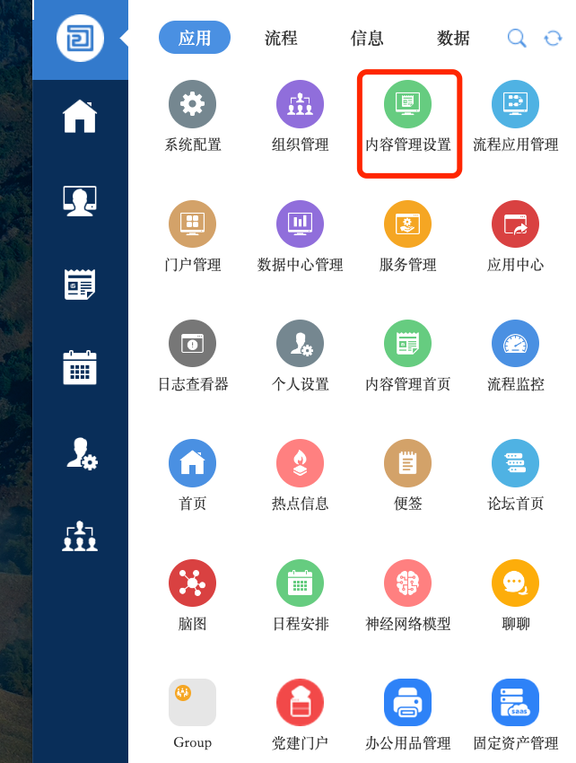 使用左上角系统菜单进内容管理平台
