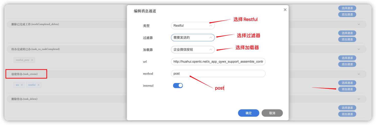 目前卡片消息只支持待办消息的处理,所以先到类型配置中找到创建待办的类型: