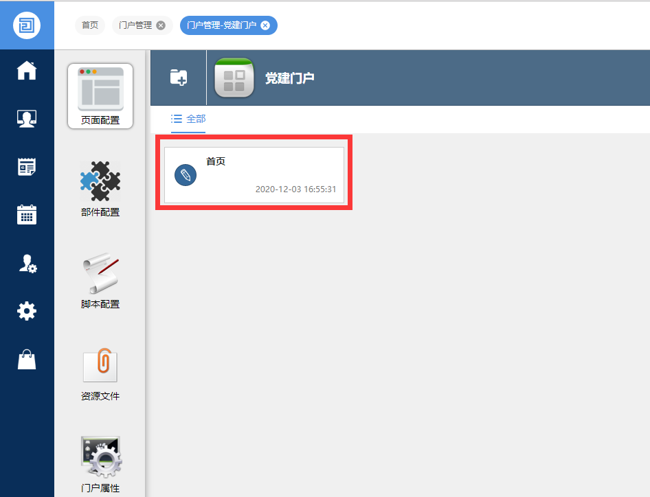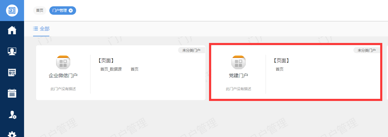 2、打开系统菜单-门户管理平台,找到应用[党建门户],点击删除按钮即可删除应用。