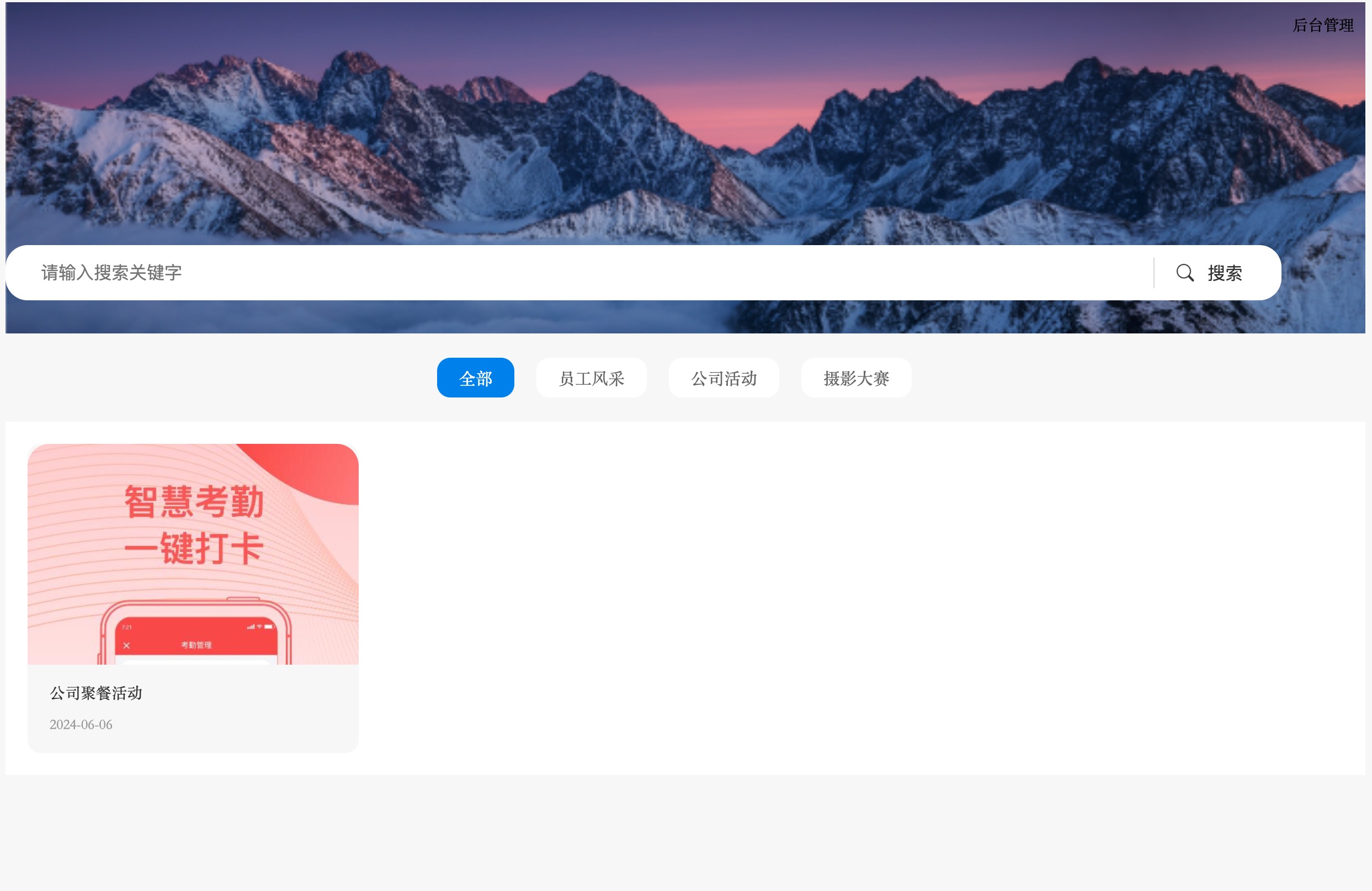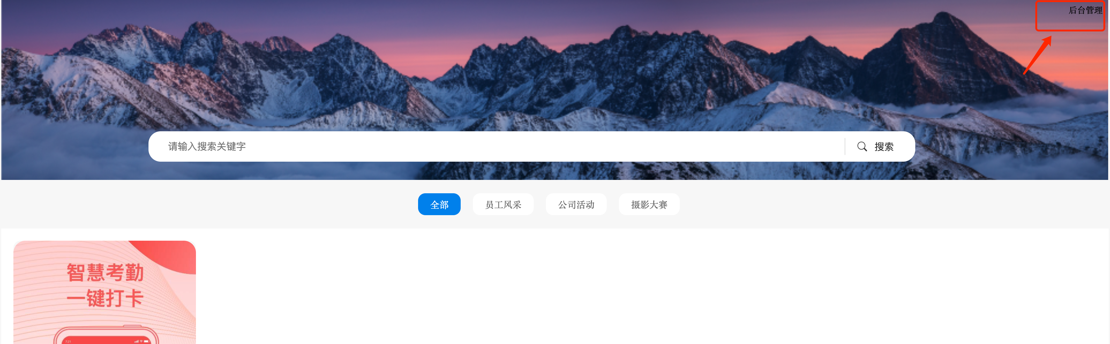 用管理员点击右上角的 “后台管理” ,进入管理页面,可以在这个页面上设置分类、上传照片、设置管理员。