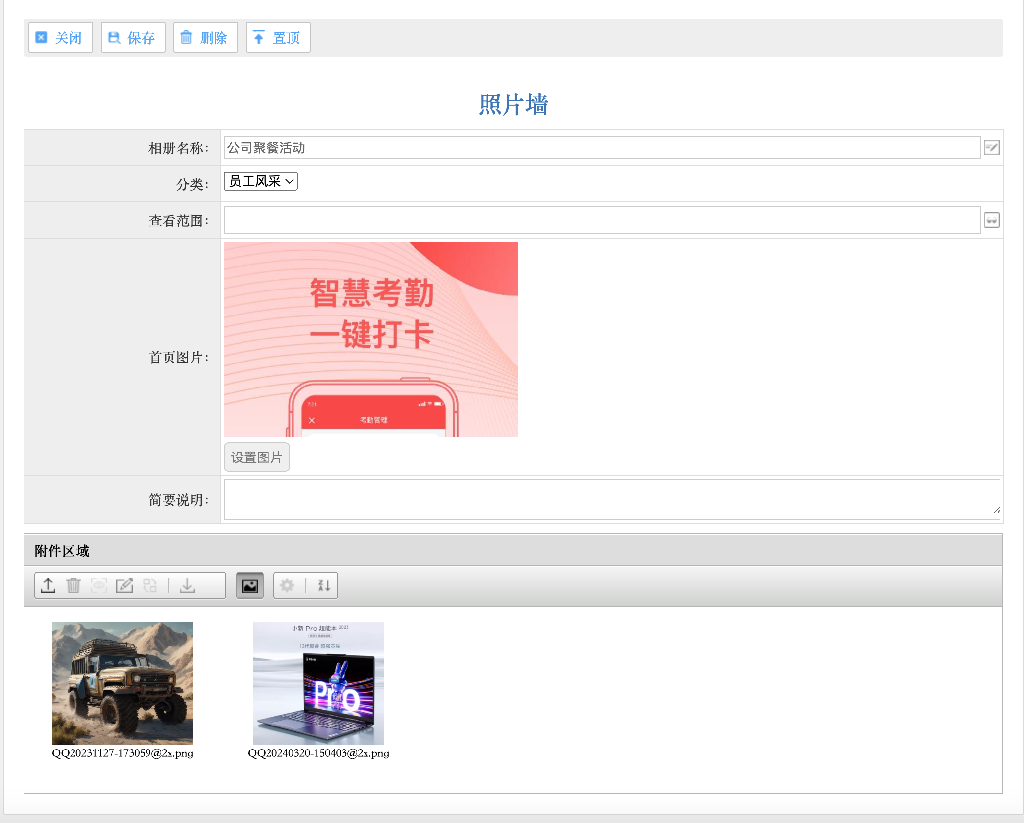 1、打开系统菜单-内容管理,找到应用[照片墙],点击删除按钮即可删除。