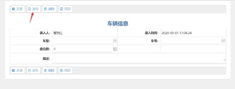 1、车辆信息:用来维护单位车辆信息,车牌号、车型、座位数等。