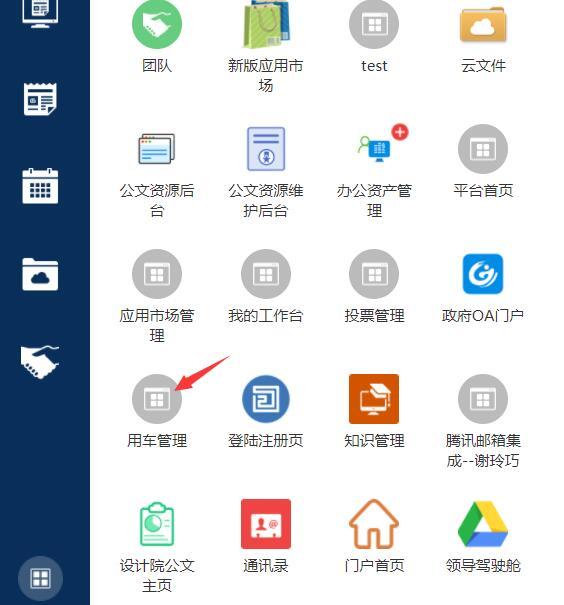 3、打开系统菜单-数据中心,找到数据中心应用[用车管理],点击删除按钮即可删除数据中心设计
