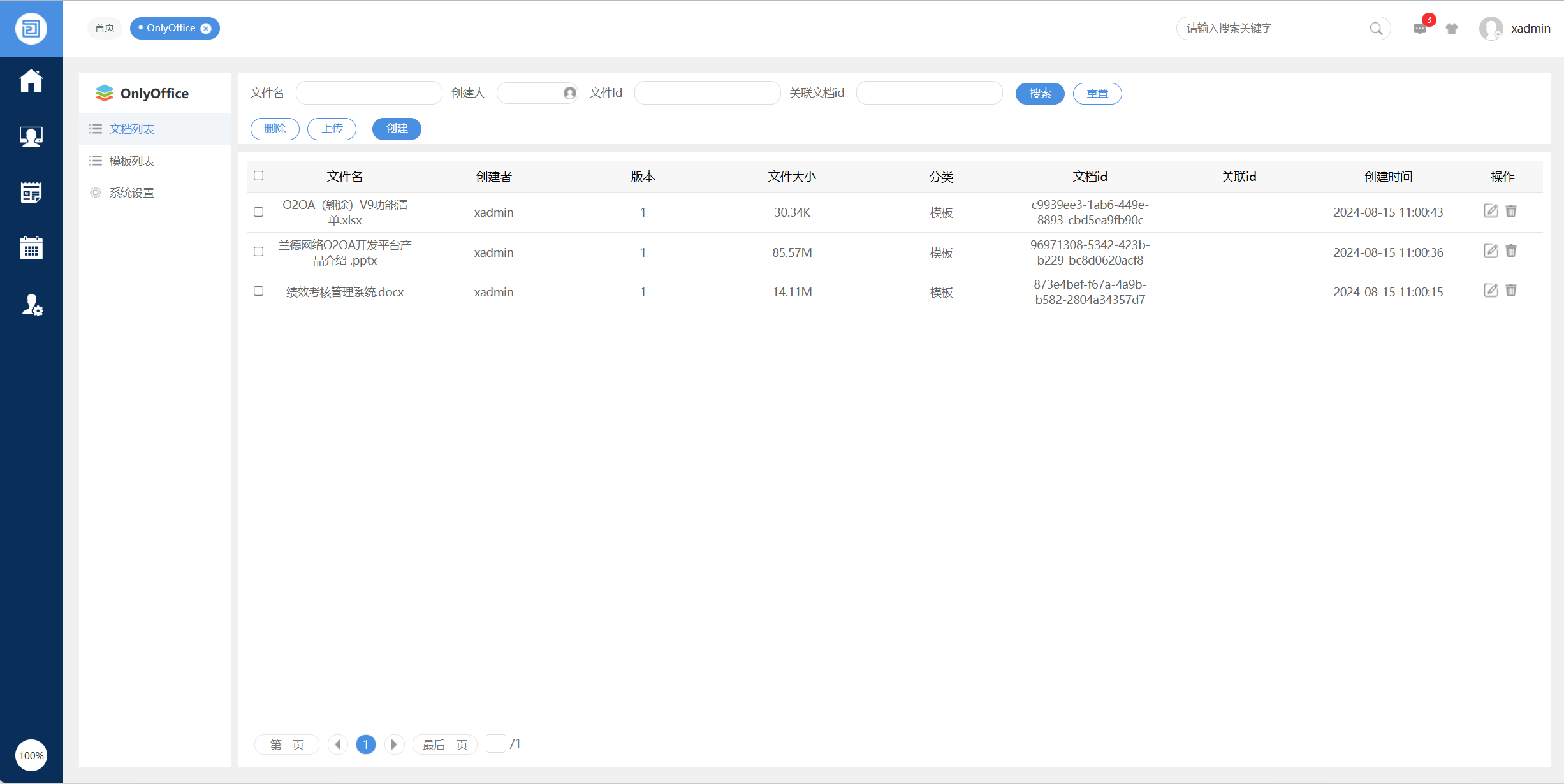 此链接所示的界面主要用于管理onlyoffice配置以及测试系统是否能正常使用onlyoffice打开文档)