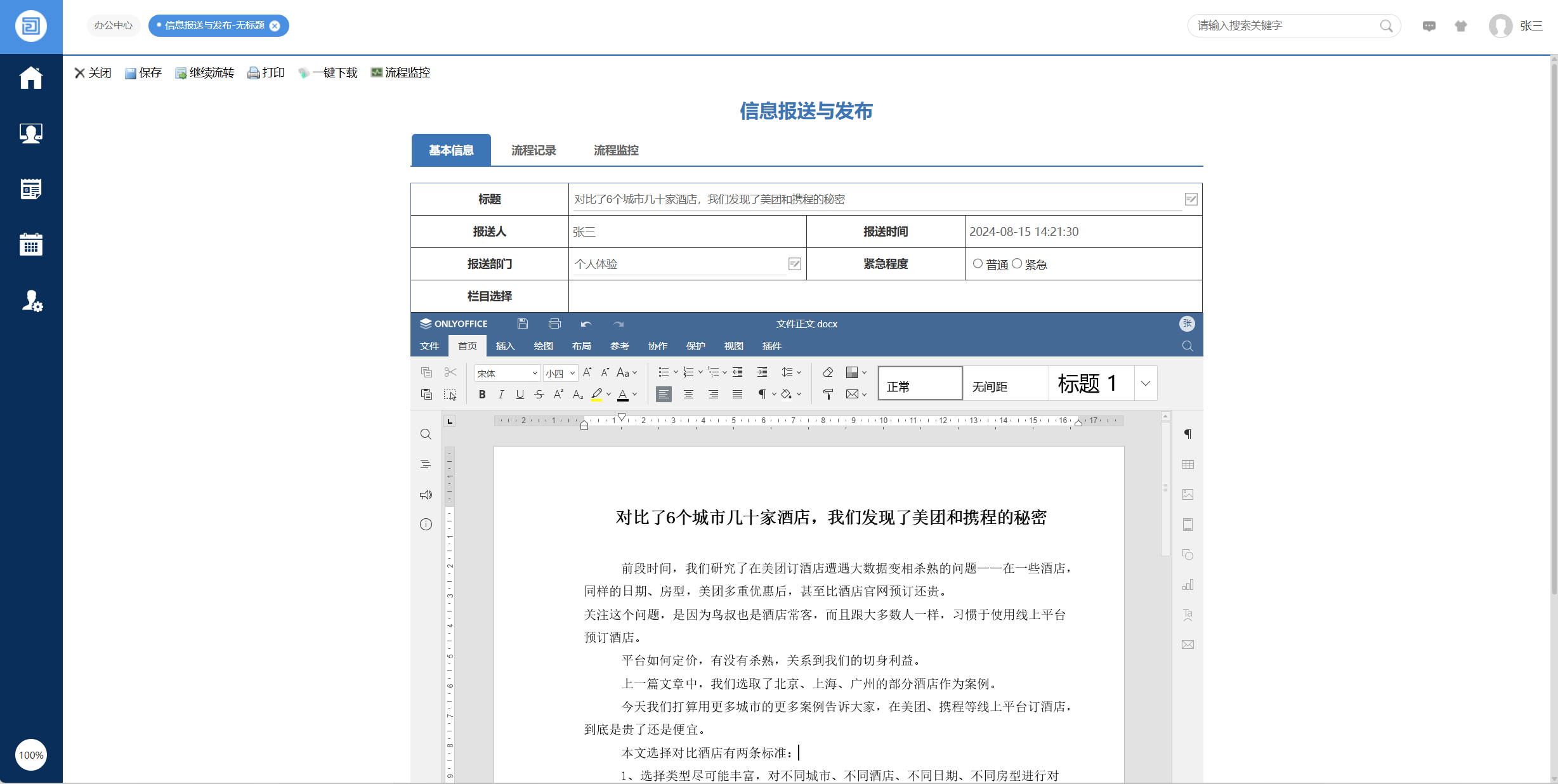 一旦集成完成,您的系统将在流程表单和信息发布表单中自如地运用 onlyoffice 控件。这意味着什么呢?