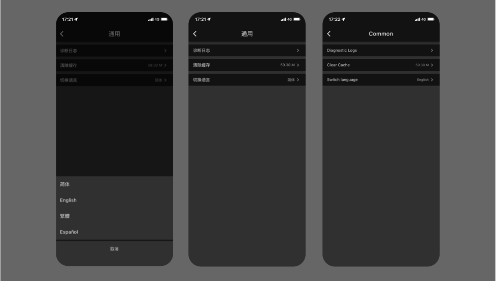 移动app支持展现文字的国际化,支持在不同的语言环境中切换,以满足不同国家、地区的多语言要求。